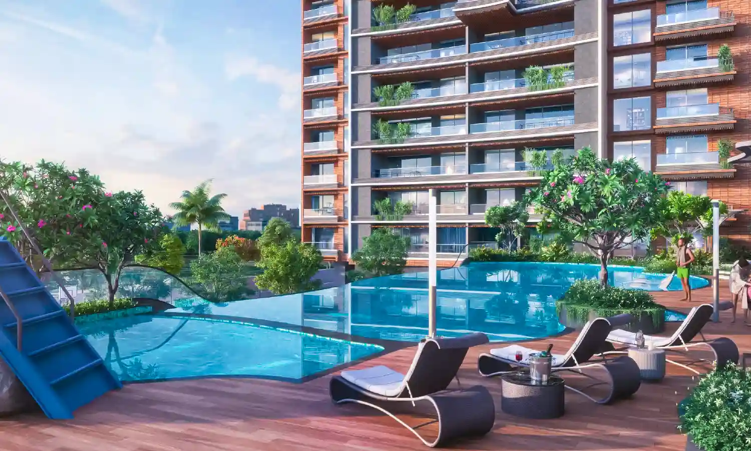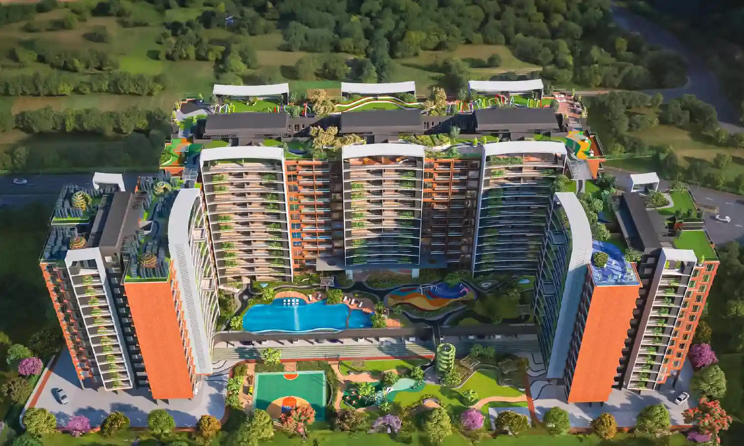 Pristine Kyra – Explore splendid living at the landmark abode in Viman Nagar, Pune. With super-spacious 3.5, 4.5 & 5 BHK flats, you will live in a Biophilic design architecture, surrounded by nature & offering cityscape skyline views. A 3-level 50+ world-class amenities presented indoors are – yoga lawn, star gazing, party decks, clubhouse, mini theatre, bowling alley, rock climbing, infinity edge lap-pool, multipurpose court, etc.
